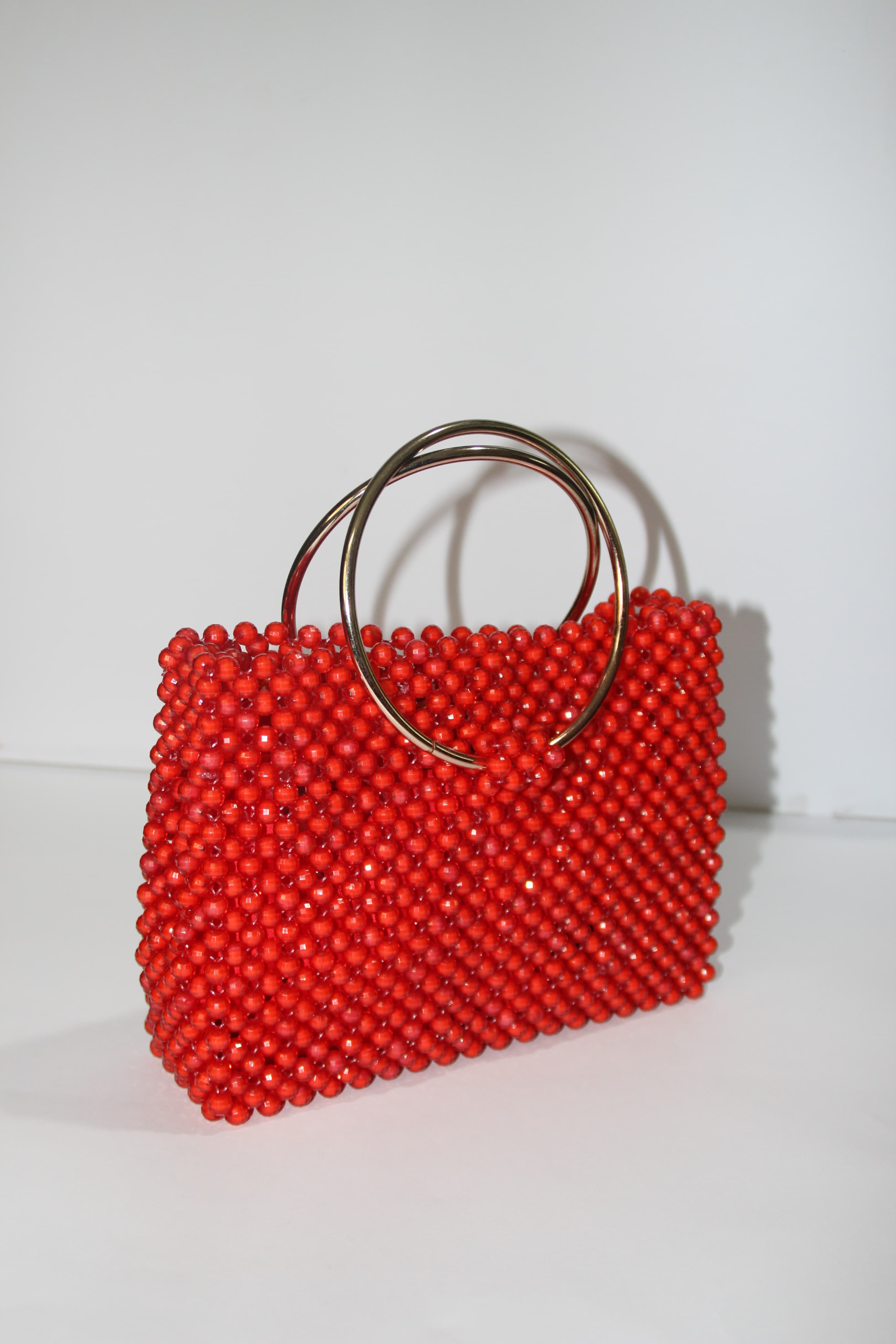 This red acrylic bead bag combines sophisticated design with durable craftsmanship. Its sleek red acrylic beads create a striking, modern aesthetic while providing a sturdy structure that maintains shape and protects your belongings. Ideal for evening events or stylish daywear, this bag offers both elegance and practicality in one expertly crafted accessory./p>
